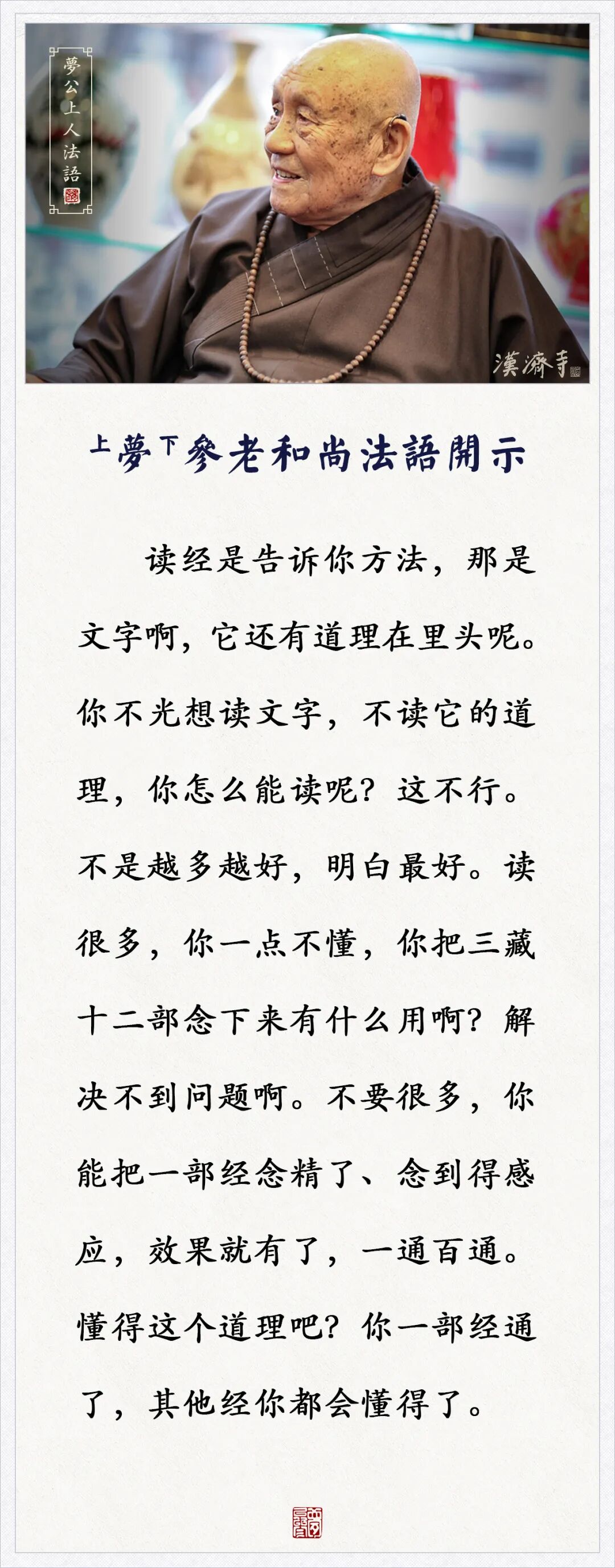 读经不是越多越好,你一部经通了,其他经你都会懂得了(梦参老和尚)