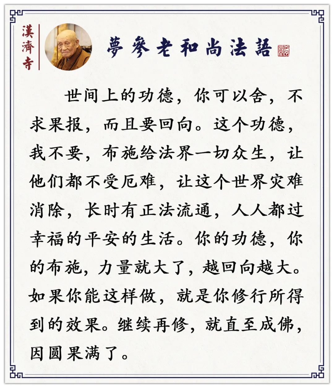 不回向,功德只有一份;回向了,功德变成百份千份万份(梦参老和尚)
