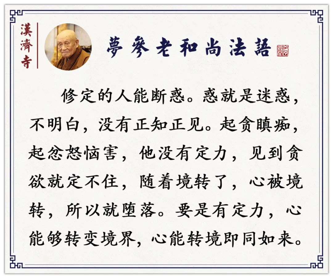 你修行你自己的,管他老和尚干什么?你想取个经验,你问问我旁边的弟子,我这二十四小时——现在啊,以前不说,现在我有什么烦恼呢?你问问他们,看见我烦恼了吗?我连病得爬不起来我都不烦恼,为什么?烦恼增加你的病。你遇着不顺心的事,再加上烦恼,更不顺心了。不要给烦恼增加烦恼,咱们是断烦恼的,要你认识烦恼——烦恼从什么地方起的?什么是烦恼?你自己找一找。