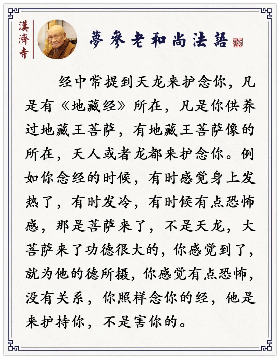 这时护法神不挡他,护法神一看,是你的亲属,不是来害你的,求你超度他是不挡的。如果从三恶道来,你会感觉发冷,因为他是从寒处、苦难处来的,你会感觉恐怖、感觉不安;如果从天道来,他的威力强,你会感觉发热,但是没有恐怖感,你感觉发烧有奇异现象。任什么现象你都不管,照常诵经,一会就过去了,隔几天就没有了。
