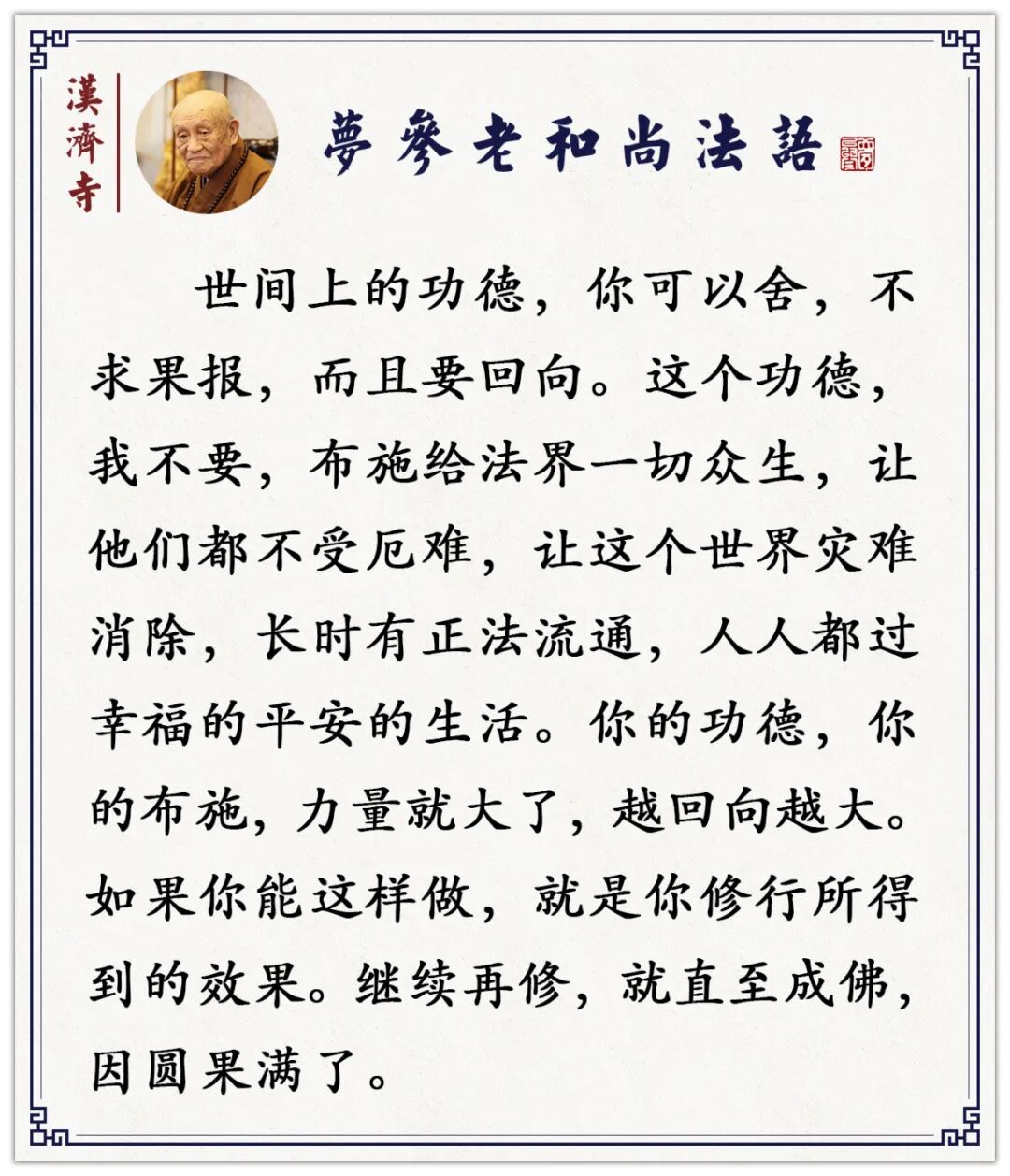 不回向,功德只有一份;回向了,功德变成百份千份万份(梦参老和尚)