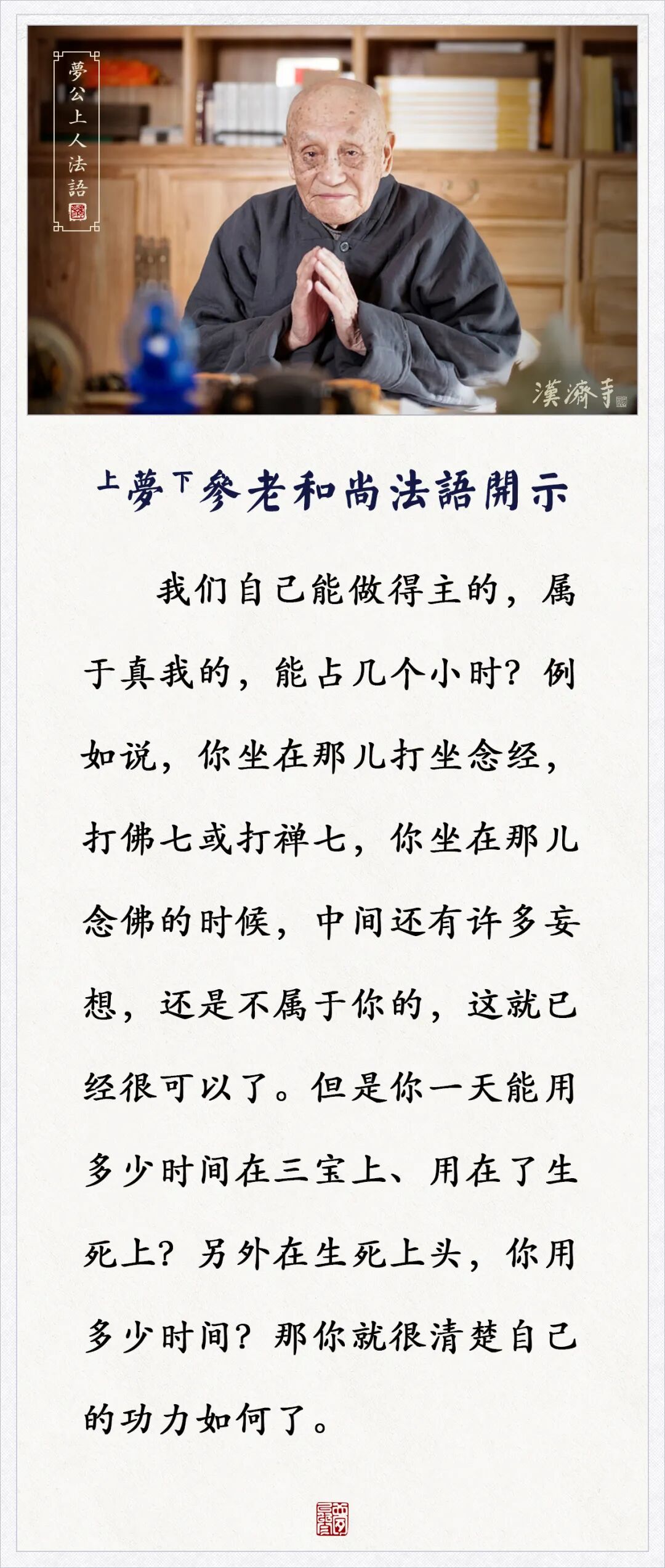 你一天能用多少时间在了生死上,就很清楚自己的功力(梦参老和尚)