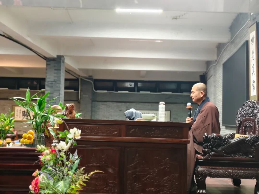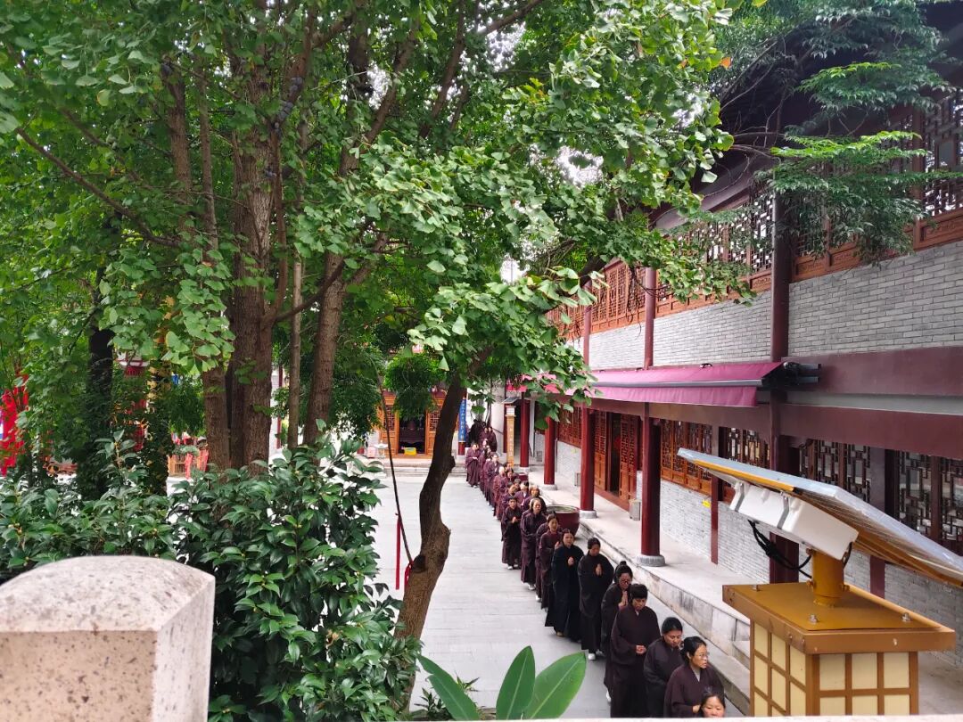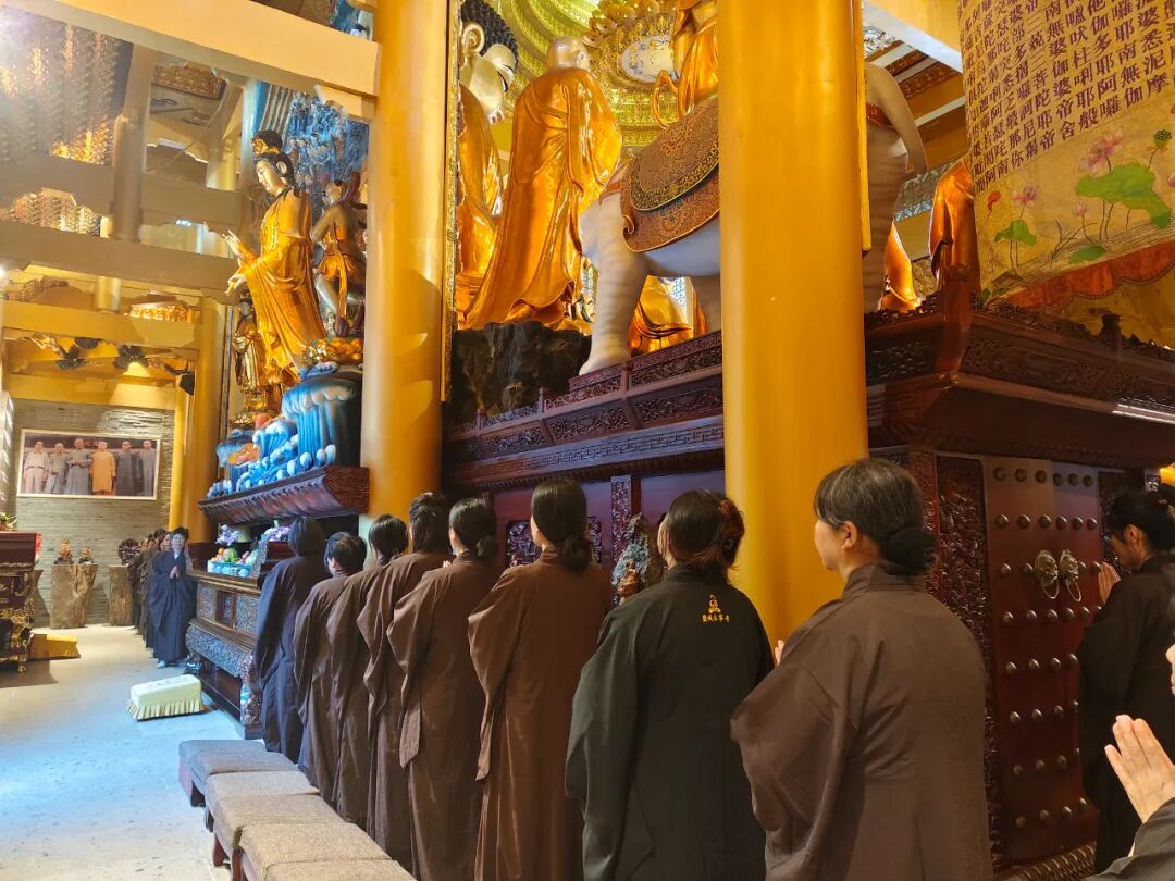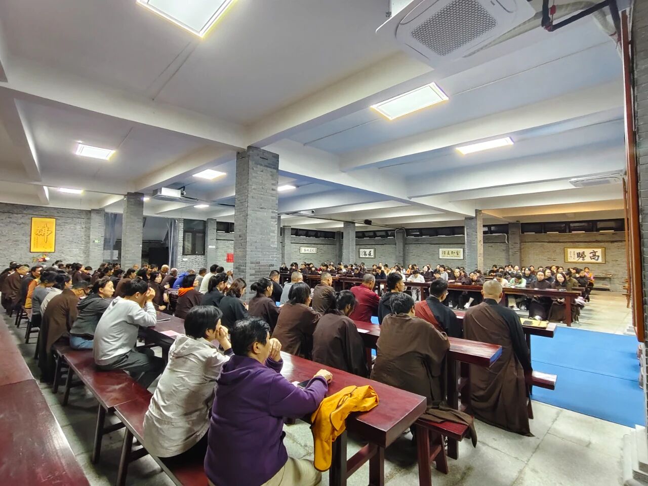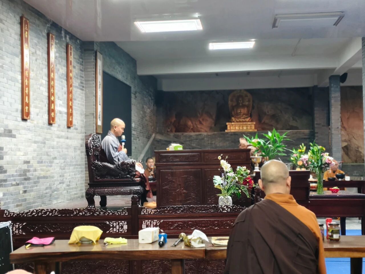 今日早课圆满,过斋之后,大和尚为众开示观音菩萨和末法众生的因缘,以及此次拜忏共修的缘起——纪念观音菩萨,同时灭罪修福,洗刷身口意的一切业障。