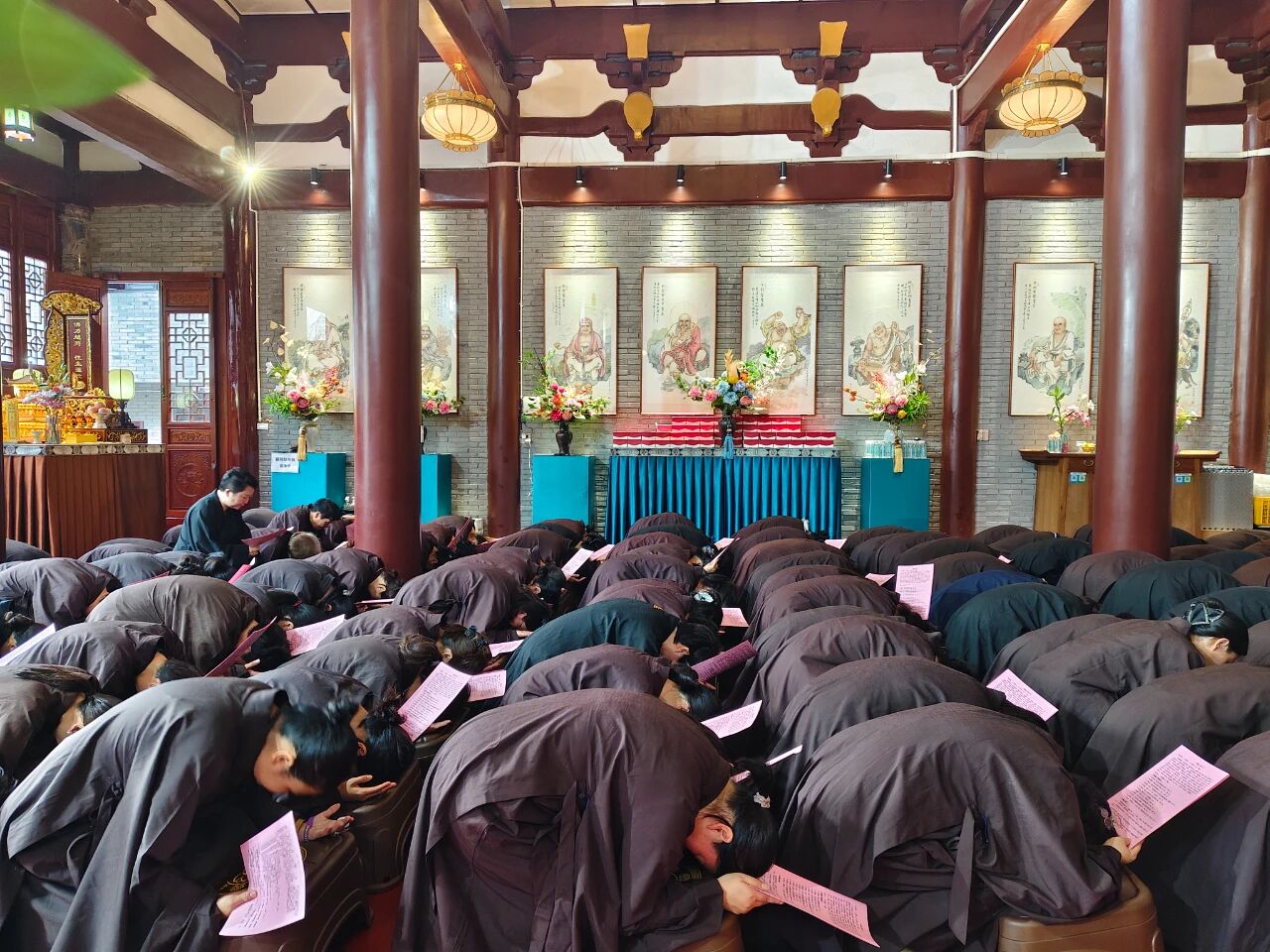 大众在受戒后移步法堂,正式开始七天的《占察忏》共修。
