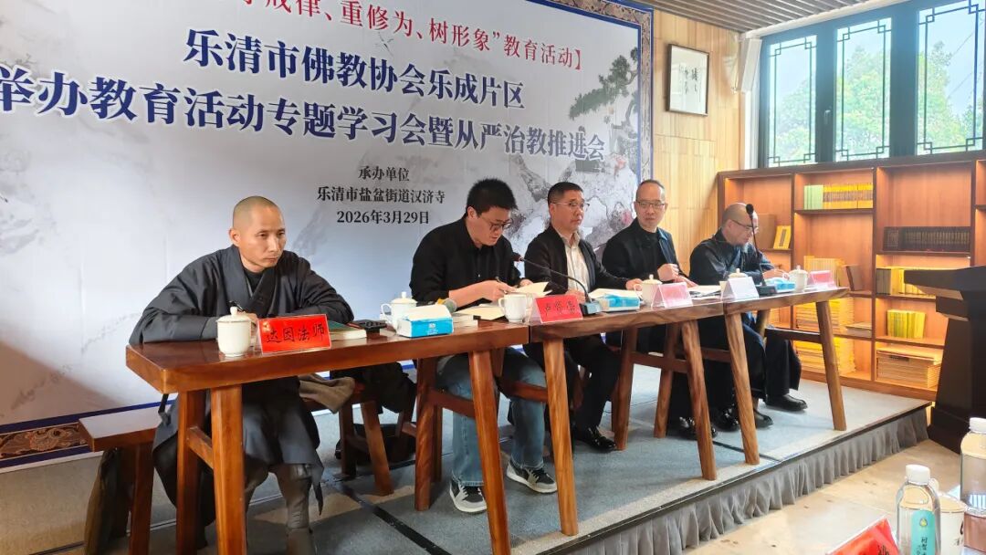 为深入贯彻落实新时代党的宗教工作理论和方针政策,扎实推进我国宗教中国化在乐清佛教领域的实践,2026年3月29日,乐清市佛教界“学法规、守戒律、重修为、树形象”教育活动专题学习会暨从严治教推进会在汉济寺召开。