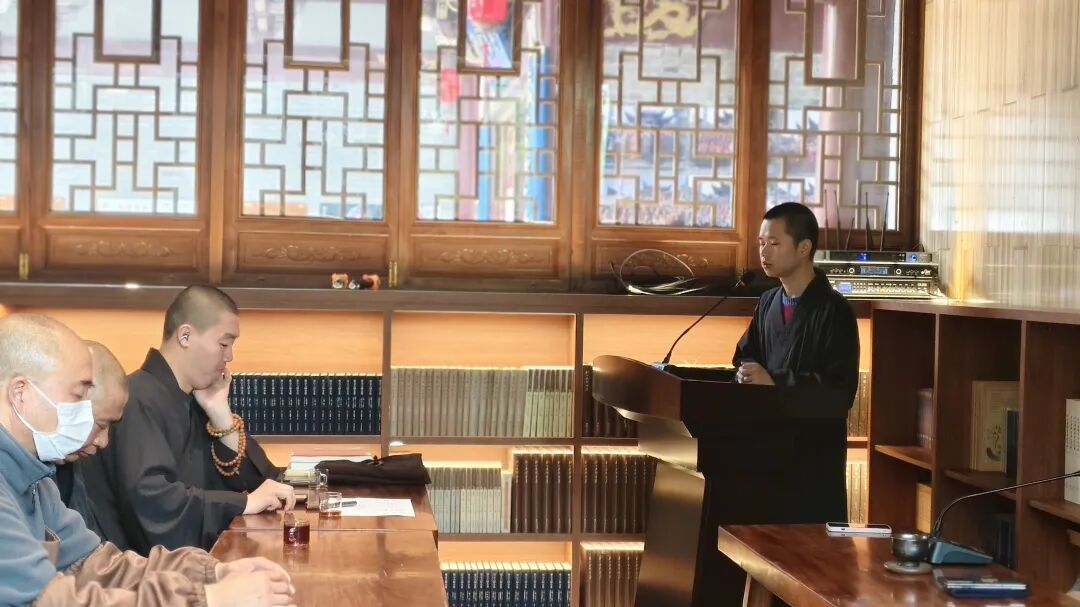 会议首先由知客能地法师、僧值能树法师、维那能戒法师就近期内部存在的实际问题及整改措施进行阐述,最后由住持隆仁法师作总结开示,为大众指明修行的方向及提出希望和要求。