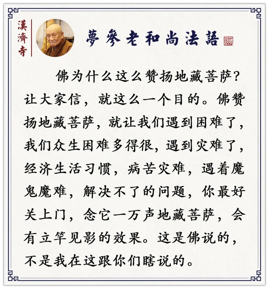 地藏菩萨教我们最方便的方法:你应该在一切时、一切处,称念地藏菩萨名号。