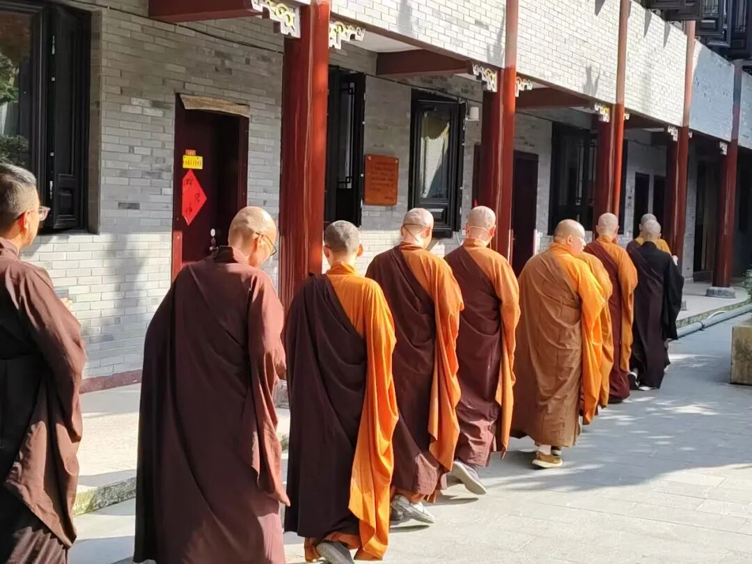 进入寺院之后,扑面而来的香火气息,让我恭敬的心油然而生。初入寮房,看到大通铺,心想也是有幸和五湖四海的人一起居住。虽然每天早起,但师兄们个个容光焕发,不施粉黛亦显庄严,这应该就是所谓的相由心生,来到如此清凉地,心清净,相亦清净。