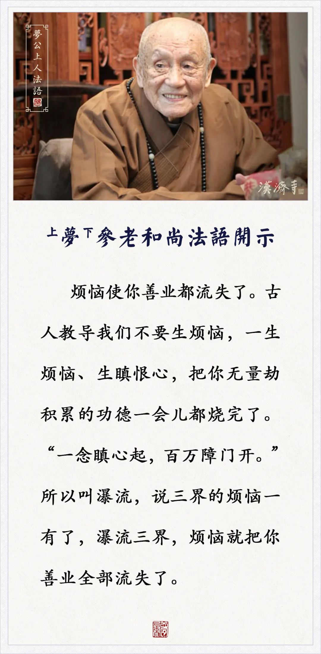 一生烦恼、生瞋恨心,把你无量劫积累的功德一会儿都烧完了(梦参老和尚)