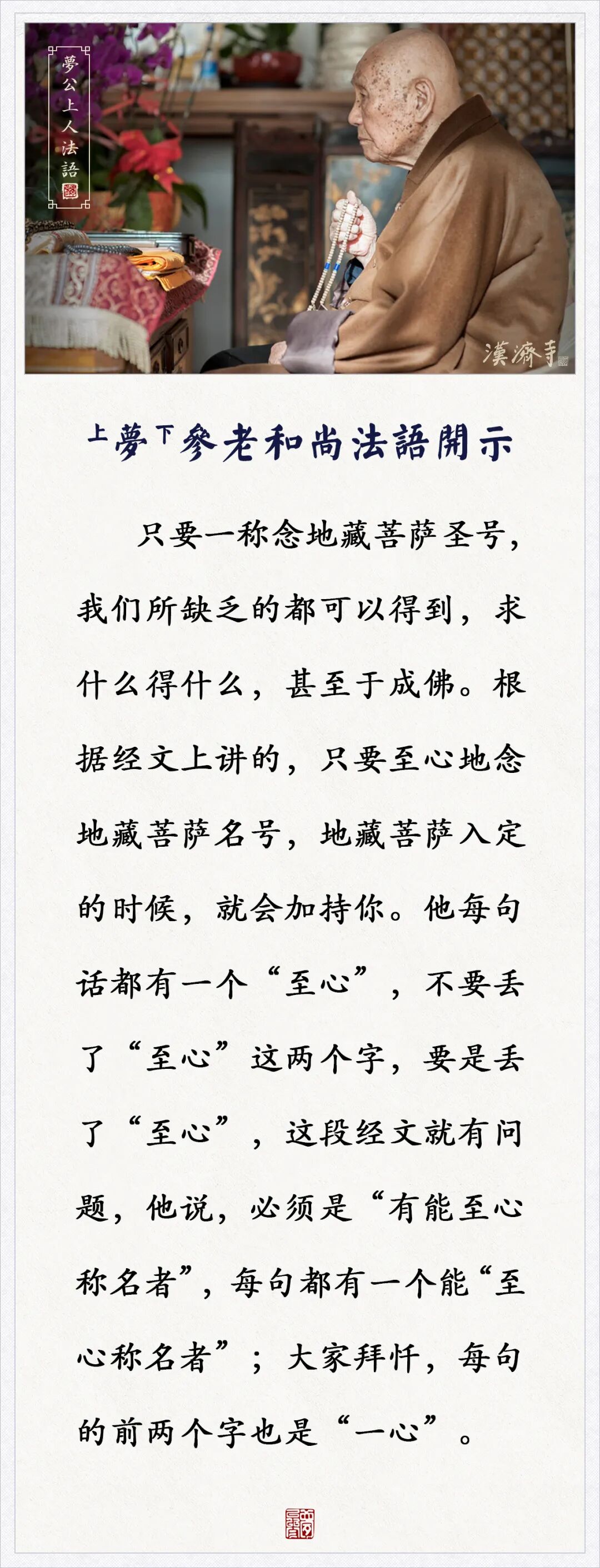 称念地藏菩萨圣号,不要丢了这两个字(梦参老和尚)