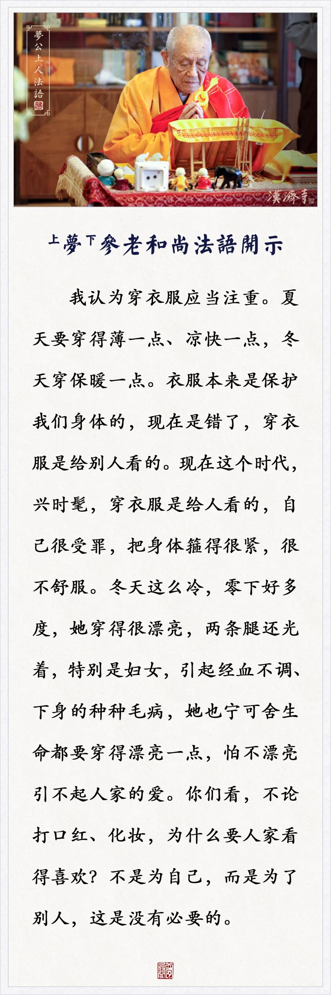 穿衣服为什么要人家看得喜欢?这是没有必要的(梦参老和尚)