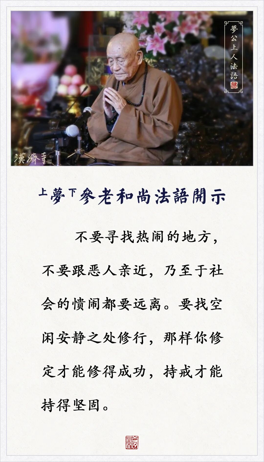 修行不要寻找热闹的地方,社会的愦闹都要远离(梦参老和尚)