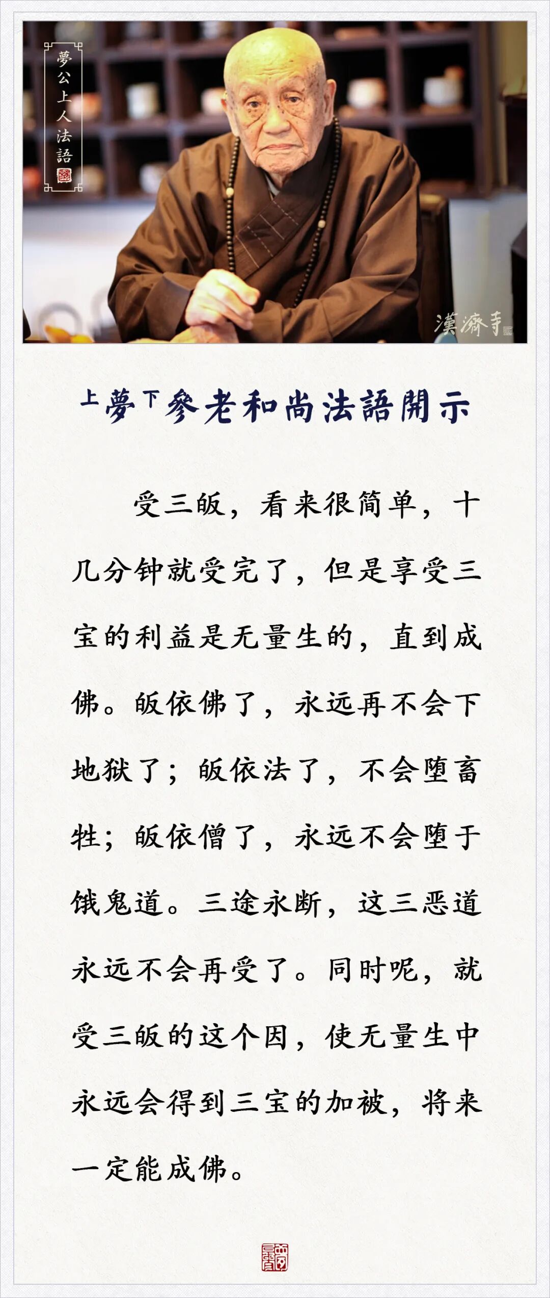 受三皈看来很简单,但享受三宝的利益是无量生的(梦参老和尚)