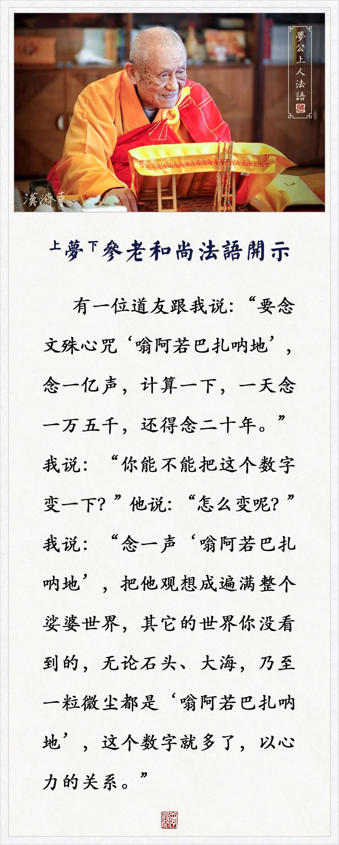 这样观想来念文殊心咒,这个数字就多了(梦参老和尚)
