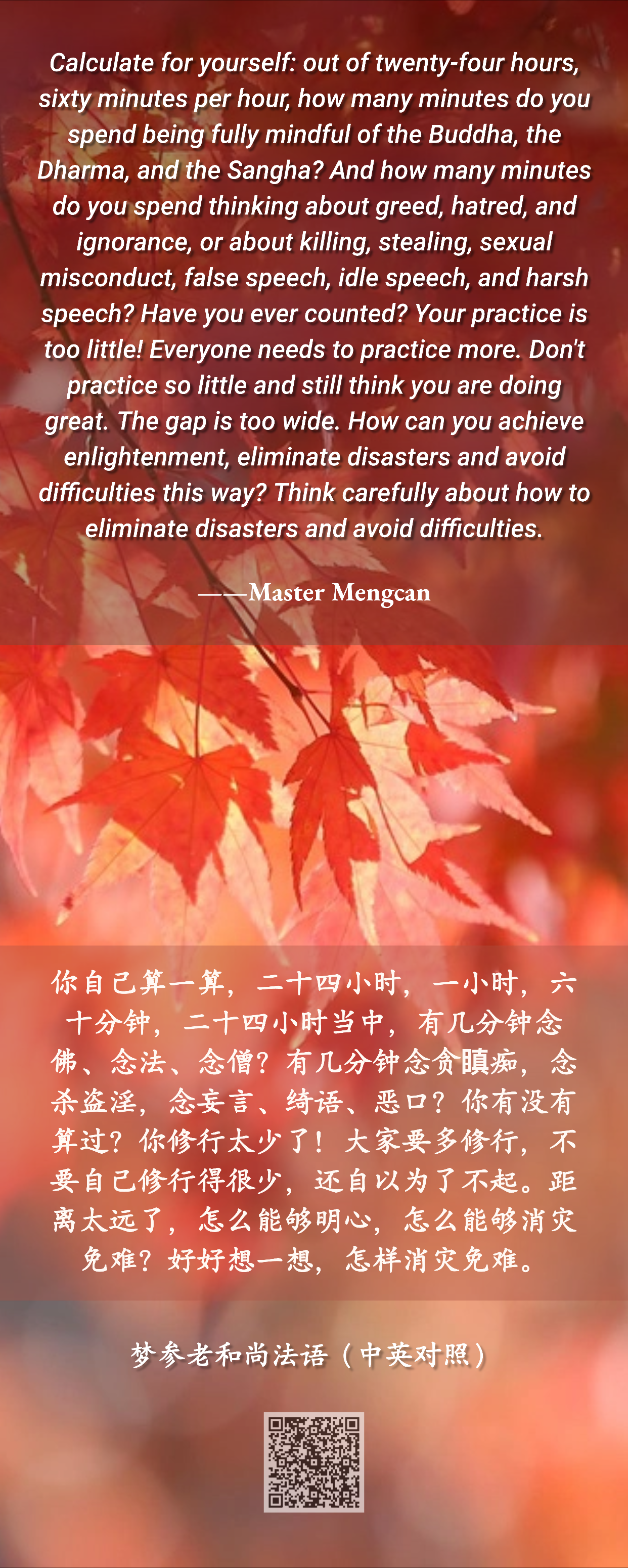 二十四小时当中,你修了多少?丨梦参老和尚法语中英对照