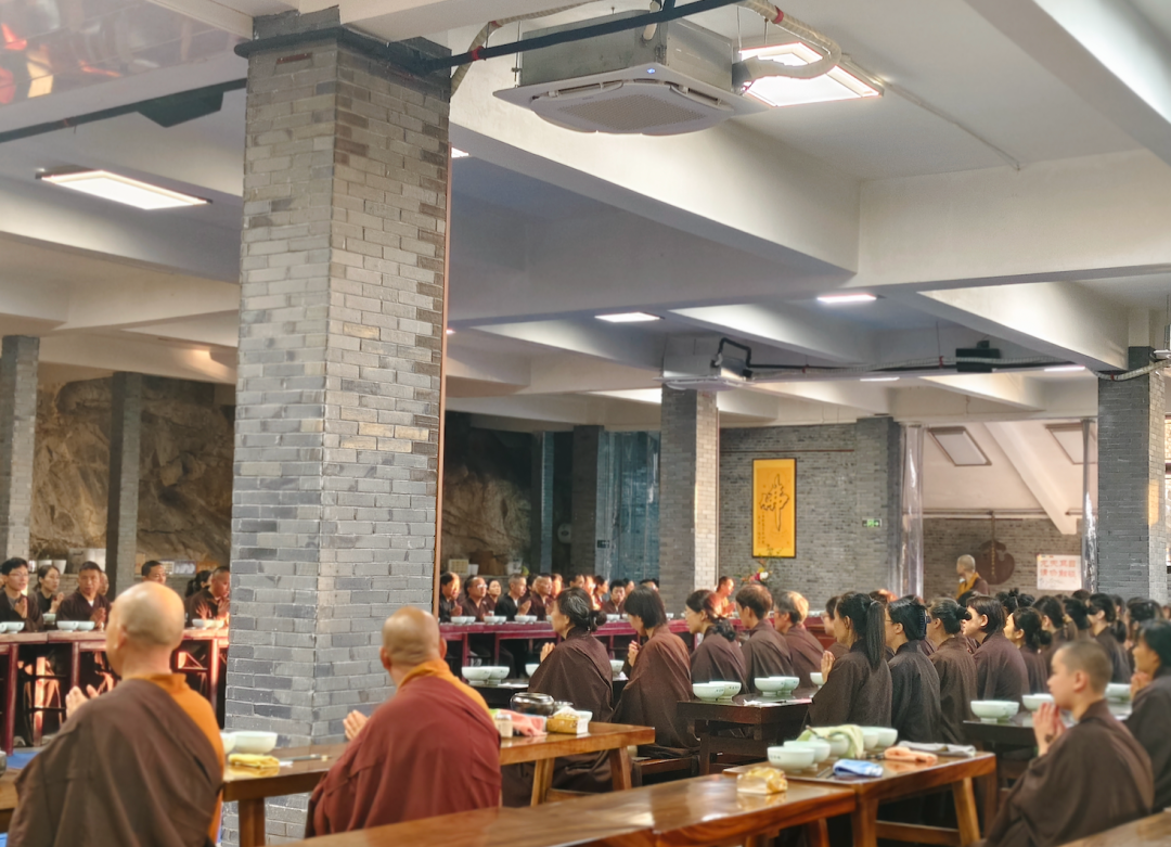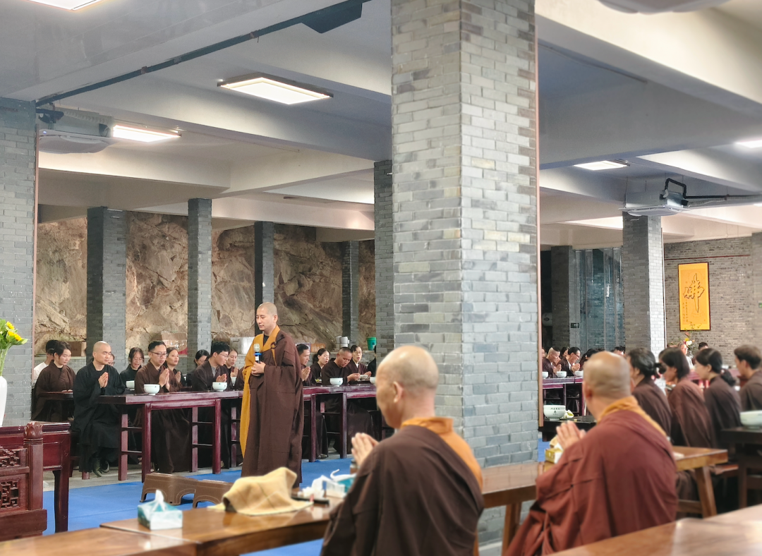今日早课结束,信众们过完早斋,聆听大和尚开示。师父详细阐述了占察忏的超胜之处: