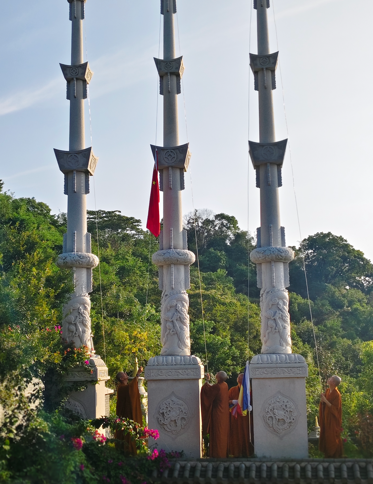 传戒圆满后,僧俗二众在山门前整齐列队,举行庄严的升国旗仪式。