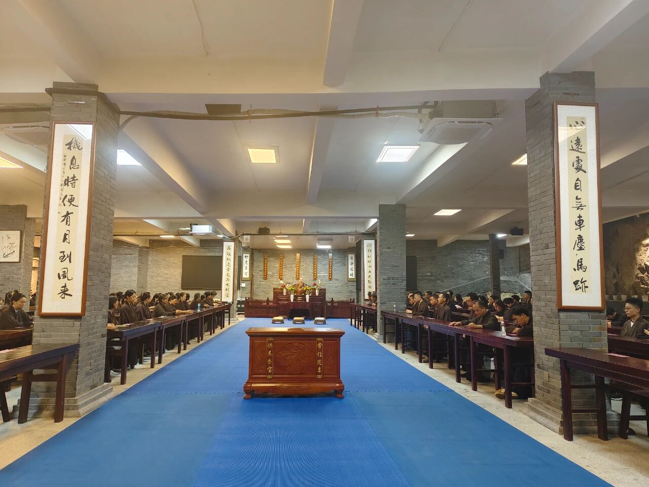 昨日,参加共修的信众便陆续抵达寺院;下午时分,洒净仪式庄严举行,为共修活动清净启航;傍晚,信众齐聚大斋堂,学习共住规约,为七日共修做好身心准备。
