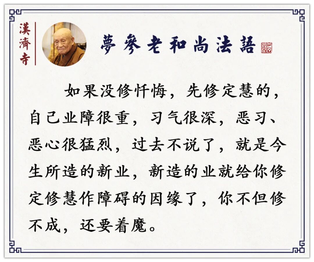 过去的宿业没有忏尽,过去的业还没有消受完,你想修定、想修慧,一样都修不成。没有办法,它给你障住了。先把罪业消完了,过去的宿业忏尽了,而且别再造新的,把旧的消尽,不再造新的,那才有个希望。如果旧业不除,新的还在造,在这基础上你怎能开悟呢?怎么能念佛求生极乐世界呢?诸位都是信佛好久的了,你烦恼不烦恼?有没有烦恼?有没有道友是什么烦恼都没有了?那你已经真的成佛了,没烦恼不就是佛了吗?有烦恼就有挂碍,有挂碍就有恐怖,有挂碍、有恐怖怎么成佛啊?这个别人不知道,你自己清楚得很,每个人都清楚。你参禅也好、念佛也好,念佛要真念、要求生极乐世界,参禅要入实禅、要付出。如果觉要睡得好、吃要吃得好、玩要玩得好,那样就能上极乐世界去了?有这么便宜的事?这样就可以了生死?不可能。你们看现在也没人比我们俩(指梦参法师与晓云法师)老,我比晓云老法师还小,我八十九岁,她九十一岁了,你们问问她、问问我,我们吃过好多苦头?她的福报大,比我吃的苦头少,我从十三岁到现在八十九岁,好日子没过过几天。我老了,我现在是个废人,没有你们的健康——我是开过刀的、动过大手术的,那个医生还说我活不到五年,但现在七年都过去了。这就是业,没有业、没有缘,没有缘怎么合聚在一起啊?大家先得在这个基础上认识,怎么消我的业障?多结善缘,佛说的是教我们“诸恶莫作,众善奉行”。从“诸恶莫作”了,那么修行才能渐渐得定、得慧,参禅才能开悟,念佛就能生极乐世界。如果业还没有尽,你自在不了。先消业,多磕头。我赞成晓云老法师说的:“今天我们这是禅净双修的道场。” 念佛参禅、参禅念佛,修定、求生极乐世界,借定的力量,念佛能念到一心;假念佛的力量,使我们能进入禅观。也很好,就照这样做去吧!祝大家早日成就、早日解脱。