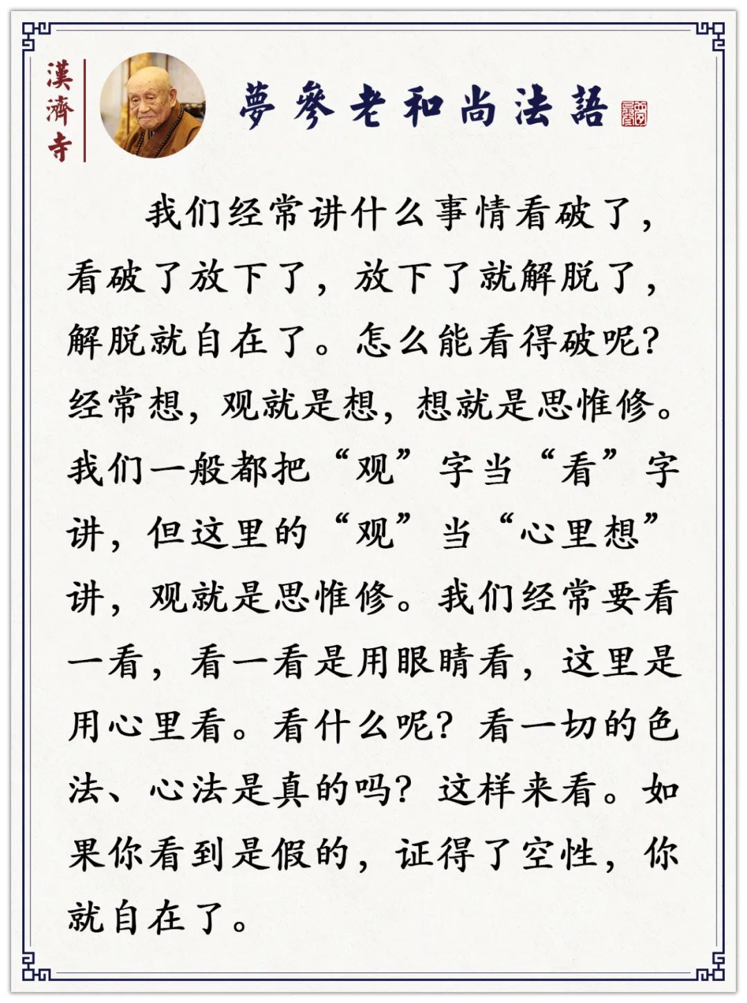 还有你要证得空性,你观空观成就了,无我观成就了,一切的业障消失了。你连我都没有了,还有什么业?谁造的业?造业的没有了,那个业也就自然不存在了,就是这个含义。不但恶没有了,连自己所修的善都没有了。观空慧、观无我,证得空慧了,自然就消失了。