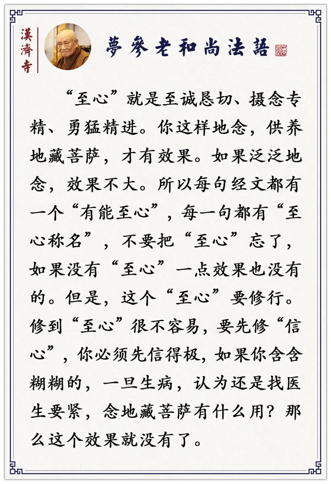 地藏菩萨教我们怎么念呢?要从心念,不是口,心口要一致,念的时候每一念都从你内心发出来。