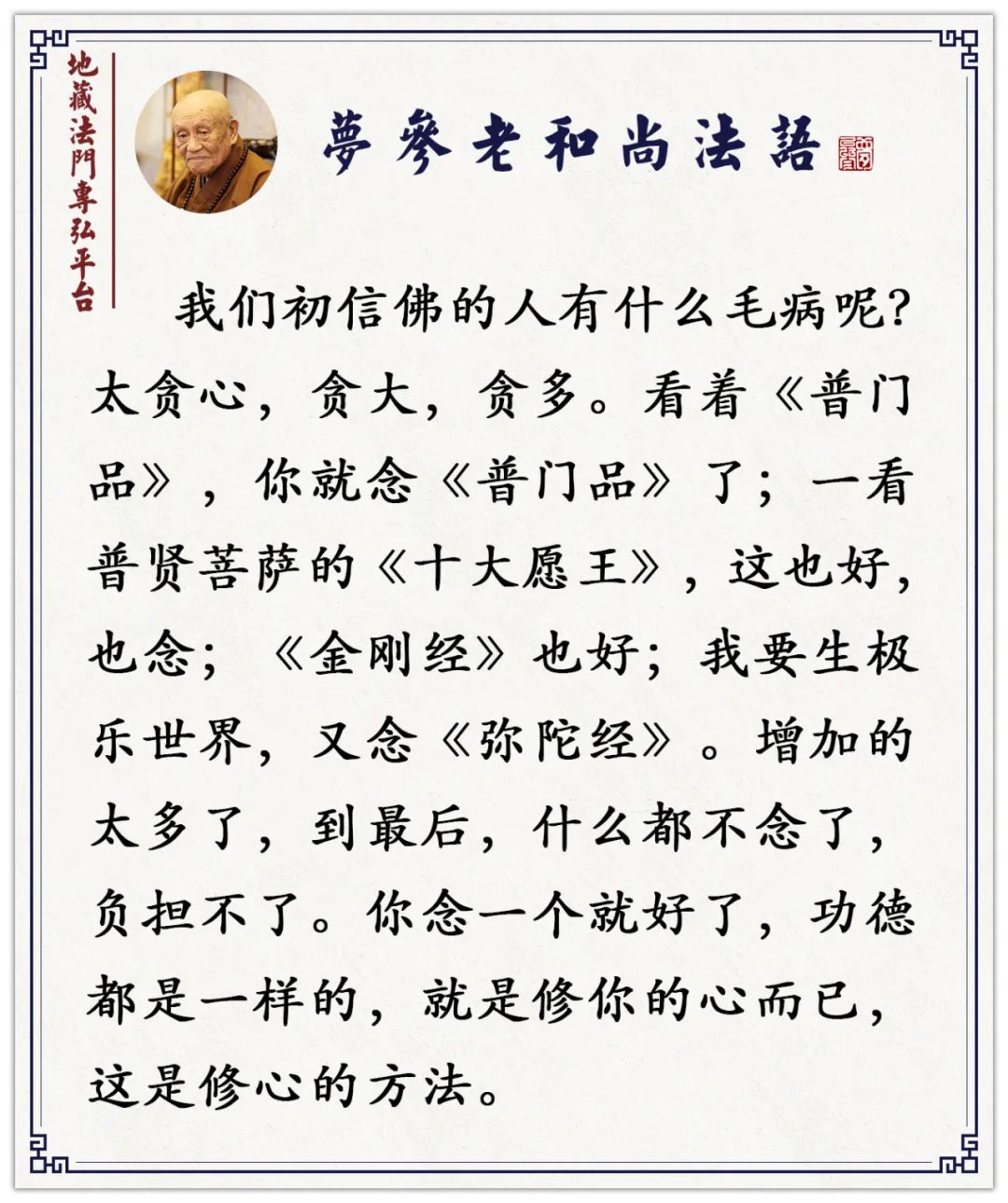 但是,不要贪多。读哪一部经都行,但是要深入!就像古人讲的故事,把小耗子装在木盒里,那个只朝着一个地方啃的耗子,很快就可以出来;而那个这儿啃啃、那儿啃啃的耗子,估计永远都出不来。