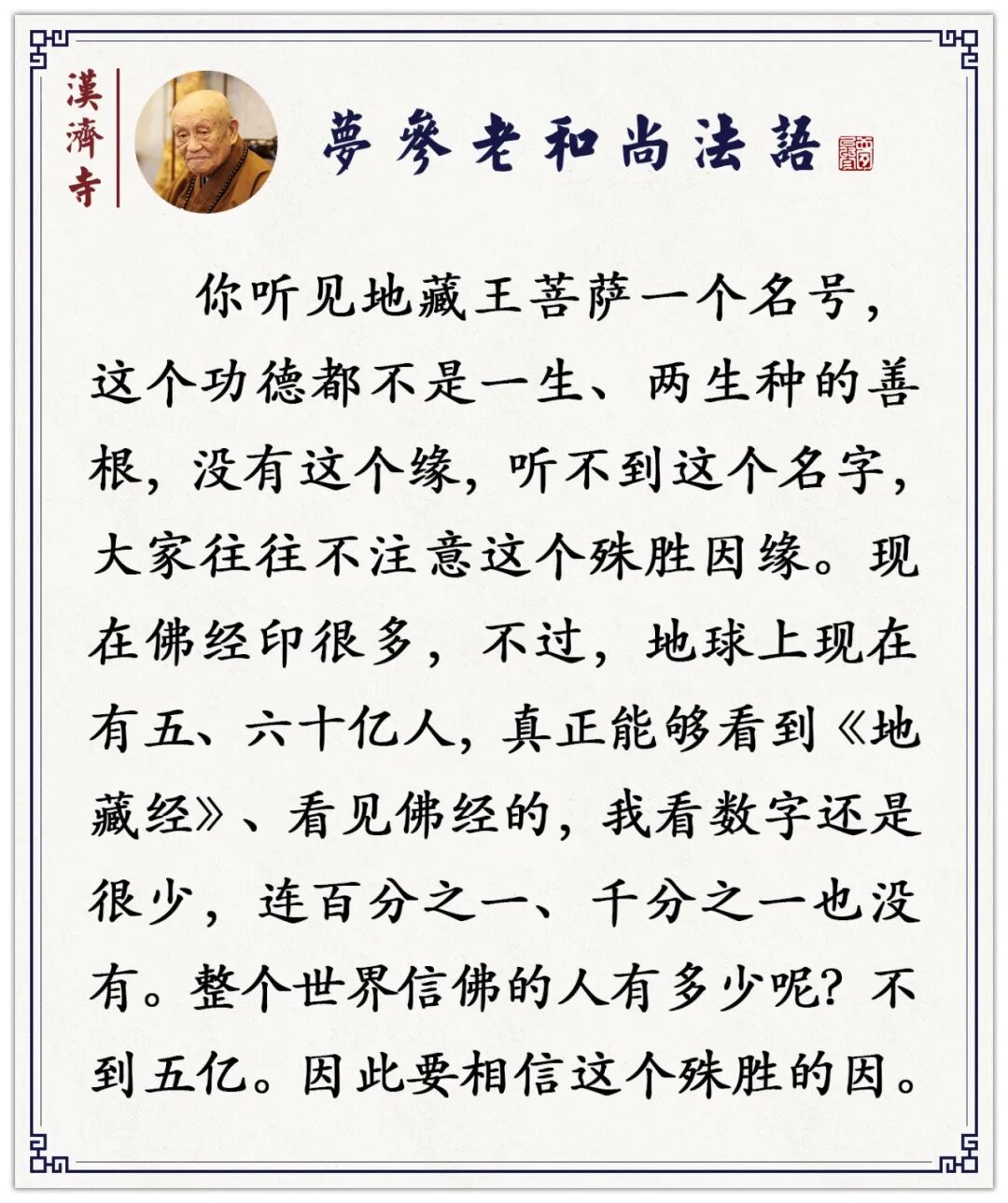 所以你理解到你能闻到《地藏经》,能够再学习《地藏经》,不是一般的因缘,是你过去得过地藏菩萨的教化没修成。