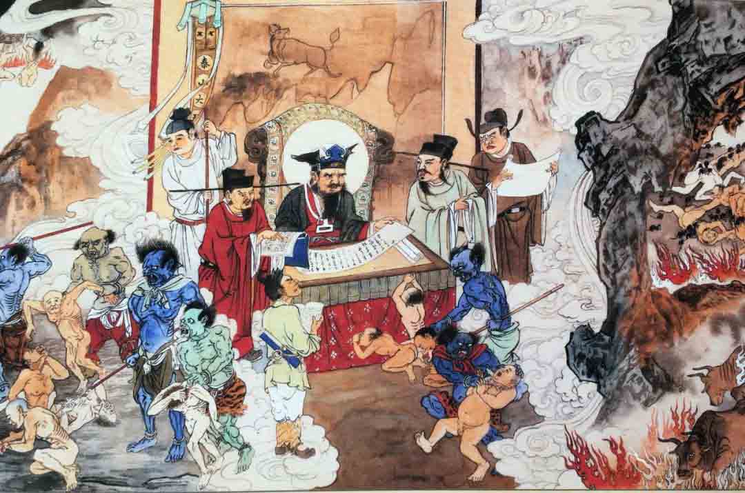 我无可奈何地又向前行,长者依旧在后。续行不远,看见一大热铁烟囟上,有人紧紧抱着,已经如同石膏人粘在其上。我一看,这不是我们邻居纪家少爷吗?他为什么在这受罪呢?长者答:“他坏了人家的女孩子(即是诱奸女孩子),所以受此罪报。”啊!在世上他家是做木牌生意的,很有钱,据说整栋仓库装的都是银元,也常接济穷困的人。那个少爷诗文都很好,为人做事也很洒脱,可是不为人知的色欲恶行,还是要自己接受果报的。可不慎哉?