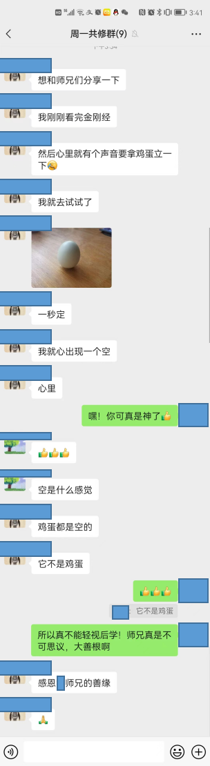 下面我想结合此一感应实例,总结几点思维所得,虽说凌乱肤浅,但确属自己真实感悟,供诸位大德、同修道友批评指正。梦参老和尚讲法时总问大家有没有“信心”?他说不是指对三宝的信心,而是信不信自己的“心”,信自己就是佛,就是地藏菩萨,观世音菩萨:修地藏法门时,我们就是地藏菩萨;修观世音法门时,我们就是观世音菩萨。老和尚这话是千真万确的!只要我们真信,真行,那我们就能借着佛菩萨的愿力,打开自性中的一切功德,能与十方诸佛菩萨的大愿功德称实相应。但问题在于我们到底是不是真信?到底是不是按照佛菩萨教我们的方法去行?只要真信、真行,就能感应道交,打开每个人自己的“哆啦A梦”口袋,里面本具一切宝藏,含藏一切万有,能生一切万法。然而,在“信自己”的同时,我们更要明白,若离开佛菩萨的加持,我们一切本具殊胜功德都将无法彰显。就好比金矿,未经开采熔炼,虽有金“性”,无有金“用”;又好比摩尼宝镜,未经打磨,虽有光明“性”,无有光明“用”。拿我自己来说,这是我第三次在本平台投稿了,每次下手写文章之前,我都至心礼拜地藏菩萨,焚香祷告,祈求菩萨加持,令我智慧增长,能够如实、如法地撰写感应实录,无有魔扰,无有错谬,能令见者闻法受益。写文章时,我常常感到灵感忽然乍现,从虚空中飘然而至,从心地里泉涌而出,这些“灵感”就是佛菩萨的加持力,遍布虚空,含藏心地,无形无相,但又真实不虚,心有几分虔诚,就有几分相应,可遇而不可期。所以,我常提醒自己:不要作有功德想!因为若有功德,那全是佛菩萨的,若有错谬,那就全是我的。又好比我在杭州某大寺院做讲解志愿者,每次到庙里第一件事情就要先焚香礼敬三宝,在韦陀菩萨像前顶礼膜拜,祈求韦陀菩萨慈悲护念,令我这一天的讲解都能契机契理,无有魔扰,无有错谬,令闻者对佛法起正信正修,都能早得三皈五戒,未来同生极乐。只有在这样祈请发愿之后,我才敢开口讲解,不至于谤佛谤法,断他人慧命。再好比我在第一篇感应实录中所说,当我第一个阶段的108遍《地藏经》和108万声地藏菩萨圣号圆满后,发现妈妈的病是快速恶化而不是改善。当时,我不去怀疑地藏菩萨的大愿功德,而是马上向我妈妈忏悔,忏悔我自己念经、念菩萨时心不真切,又重新发心用49天再完成49部《地藏经》和100万声地藏菩萨圣号,乃至后来又有第三阶段的发愿,最终得以与菩萨大愿功德称实相应。我想我们应常怀惭愧之心,相信自己是业力凡夫,平日若有些许功德,全是佛菩萨加持的功劳,如有生死烦恼,都是自己愚痴无明,业力所牵。若总能这样思维,那我们就容易感应道交了!梦参老和尚说:“你的心若灵了,心能转化身,能转化身就能转化三千大千世界,能转化一个三千大千世界,就能转化无量无边的三千大千世界”。记得去年5月份,妈妈重病未发之前,我带着二老去登黄山。黄山一年四季云雾天气为主,运气不好就看不到山景。我们登山那一天就赶上了小雨,所以云雾浓密,不见山体,心中不免有些遗憾。在我们登顶至气象台位置时,坐在岩石上休憩,我暗暗祈求龙王菩萨和山神菩萨:“弟子发心带父母来登黄山,此为二老长久以来的心愿,如今他们年事已高,恐怕此生再无机会重登。愿龙王菩萨、山神菩萨怜悯我一片至诚纯孝之心,让云雾散开片刻,容二老一睹黄山真面目,令他们不虚此行,了无遗憾!”然后,我就开始一直称念佛菩萨的圣号,闭目观想云雾散开光芒显现。大约就10来分钟时间,随着云雾很壮观地快速漂移翻滚,不一会儿,对面的莲花峰就清晰可见了,一时间秀美的黄山现在了眼前,爸妈看了都很高兴,感叹此行既能得见黄山山景之峻秀,又能领略云雾松林之灵气,真是了无遗憾!但就维持了一二十分钟时间,云雾重新遮蔽,没多久又下起了小雨。我们都感慨这定是佛菩萨应念加持,满足我们所愿所求的缘故!心若灵了,连三千大千世界都能转,可移动三千大千世界如手中的摩尼宝珠(《维摩诘说经》中维摩诘大居士就是这么示现的),何况只是让山上的云雾散去一会儿?!我这两次经历都说明,只要至诚恳切,心念一灵就一定能办到。再讲一个昨日刚刚传来的神奇消息。如前文所说,我在杭州某道场做义工,经常周一去给游客义务讲解,而中午时间会和师兄们坐下来共修。之前我和师兄们共修了《地藏经》,并转发法师开示《地藏经》的视频供大家学习。有一位师兄看完后就问我可否推荐讲《心经》或者《金刚经》的视频。于是上上周一,我带了一本梦参老和尚的《浅说金刚经大意》给这位师兄。俗话说“书非借不能读”,为了督促大家好好珍惜,用心修学,所以我约定这本书大家轮着看,一人只能看两周。这位师兄用十二天看完,然后就传来下面这一神奇的消息: